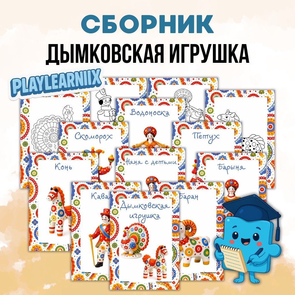 Развивающий сборник, посвящённый дымковской игрушке и знакомству детей с русским народным искусством.