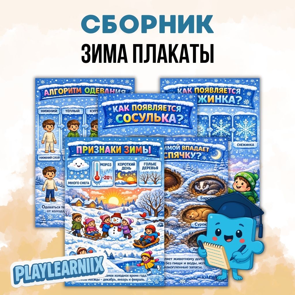 Набор наглядных зимних плакатов, предназначенных для использования на занятиях с детьми и оформления развивающей среды.